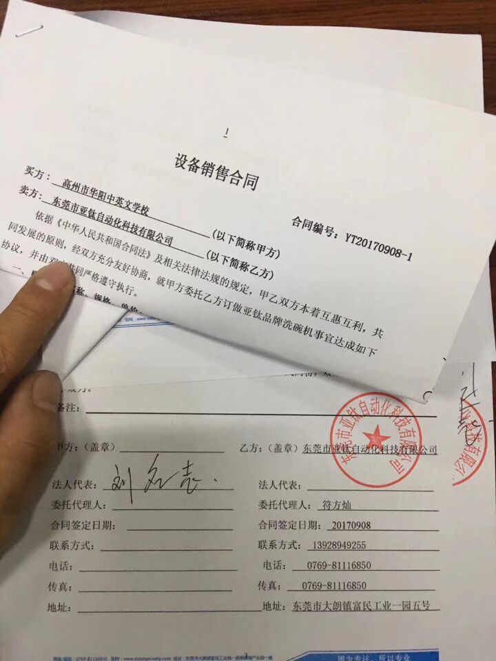 經過三個月的洽談,終于得到高州市華陽中英文學校各位領導的認可,正式和亞鈦洗碗機合作,并與七月份中旬裝機試機成功,當場試機清洗的餐具得到各位領導的一致肯定。特別是劉校長的鼎力支持。